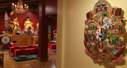 輪迴,也就是眾生在世俗或有為現實中生存的六道,是眾生看到的世界;而法界是絕對或最終的現實也是成道者們看到的世界,法界也被認為是已脫離生死輪迴者的佛土,是佛菩薩的世界。輪迴有三界:地獄眾生、餓鬼、畜生、人和包括一些天神和阿修羅神的較低的天人的慾界,一般來說,前四類眾生和較低的天人和阿修羅神都住在慾界;色界中有有形的天人但他們已沒有慾望;而無色界中沒有慾望或形象,只有純意識。除非覺悟成聖,眾生是不能脫離在六道輪迴中的投生的。作為生活好和做好事的結果而生在天人道是非常快樂的,但一旦善業耗盡仍將投生別道來償還業債。生為一位好人被認為是最理想的投生,原因是人道雖有痛苦和死亡,還有機會學到佛法,行善和償還業債,因而能出離輪迴。